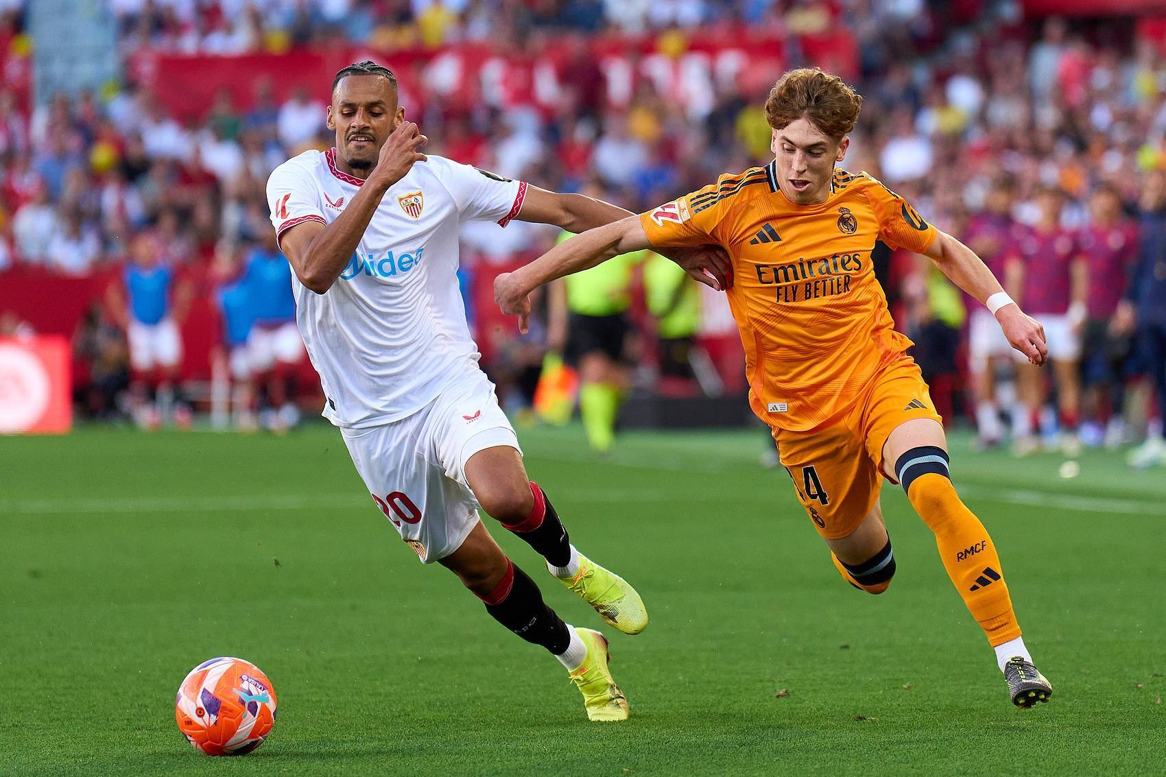 在西甲第37轮皇马客场2-0塞维利亚的比赛中,皇马的两位青训球员穆尼奥斯与加西亚扮演了关键角色。姆巴佩在75分钟首开记录后,正是穆尼奥斯和加西亚的配合为贝林厄姆送上锁定胜局的第二球。